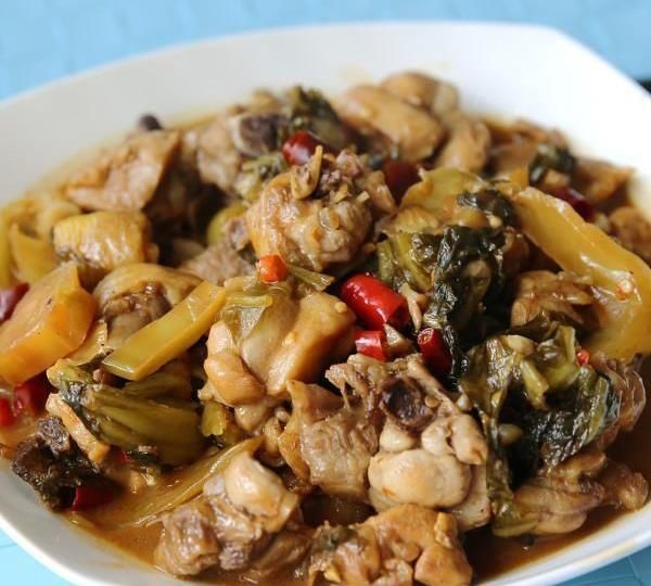 1年。鸡肉洗净,酸菜丁;把鸡肉切成块,洗净。准备调料;