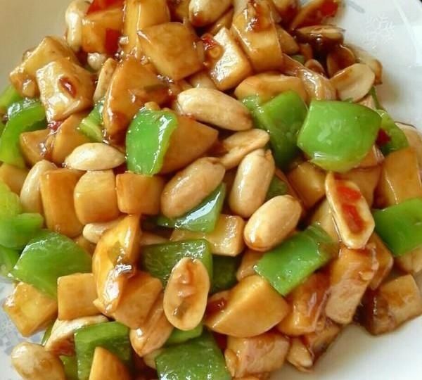 8年。加入花生和青椒,翻炒几次。倒一点芝麻油