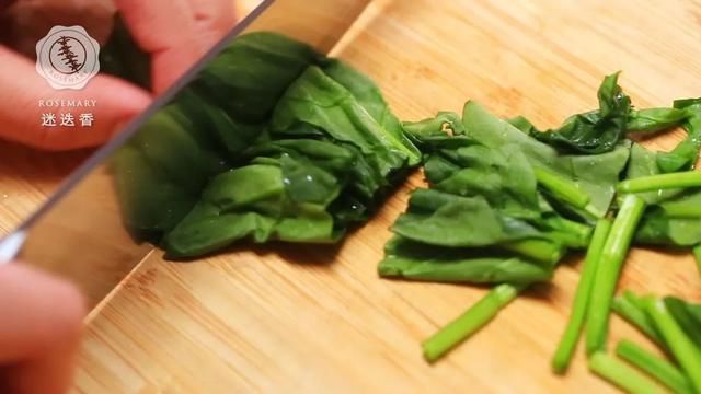 9。将切碎的菠菜放入沸水中焯一下,备用(菠菜含有太多草酸,你必须在食用前焯一下)。将清水倒入锅中煮至沸腾,将姜丝、猪肝、枸杞和菠菜倒入锅中煮一分钟。然后将芝麻油和盐倒入锅中,搅拌均匀。美味无比!