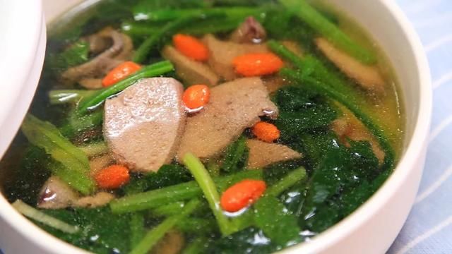组合是一种明目清肝的菠菜猪肝汤。不管是上网络课的学生还是熬夜打手机的年轻人,这碗汤应该是喝多了