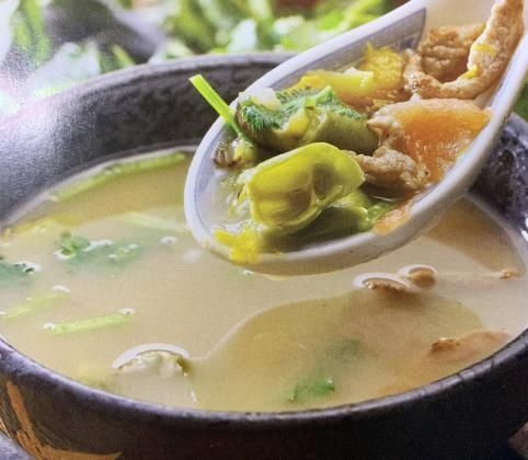 这汤又酸又甜。如果你在烹饪的时候加入原料,味道会更浓。