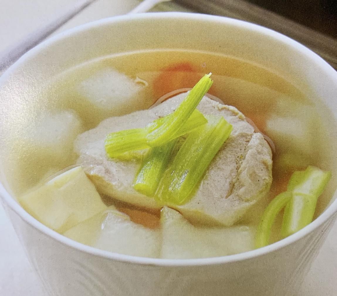 配料:冬瓜300克,冬笋150克,胡萝卜100克,瘦肉150克,芹菜50克,骨头汤