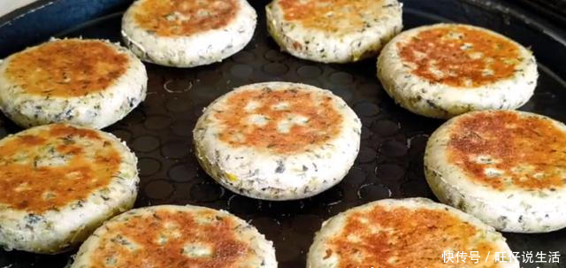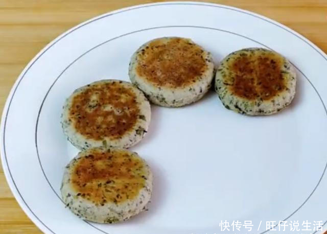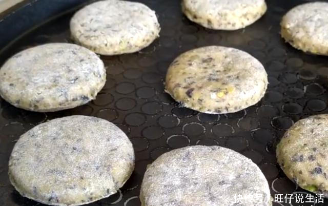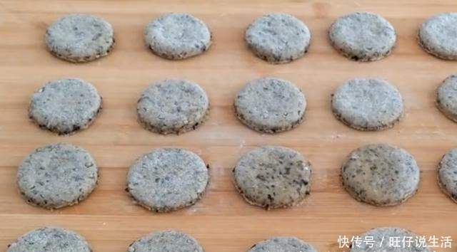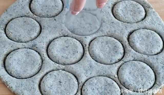 5,摊平后揉成面团,排气,卷成半厘米厚的煎饼。用一个杯子挖出小圆饼