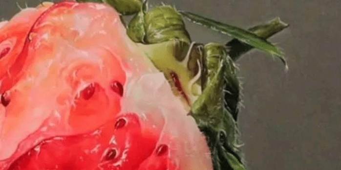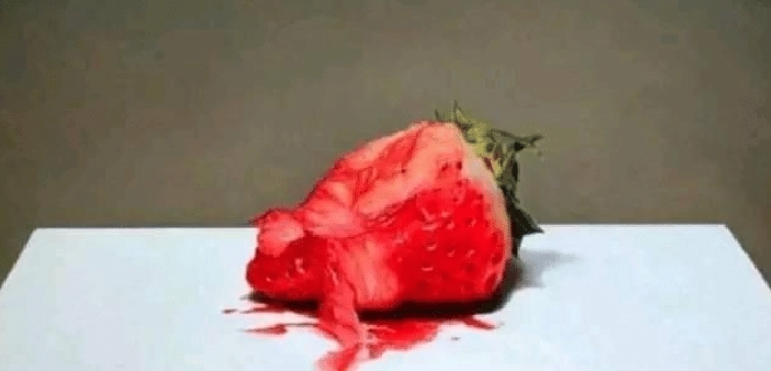 对于冷峻来说,他使用的大部分艺术技巧都是超现实主义的,没有将太多的抽象艺术技巧融入到他的绘画中。然而,周松不同。他用不同的方法展示草莓的美丽。他没有给整个草莓涂上鲜艳的颜色,而是把一半的草莓汁涂得到处都是。周松的技术充分展示了草莓的美丽和迷人。