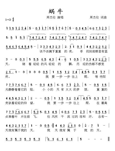 周杰伦 蜗牛 歌曲简谱分享_周杰伦 蜗牛 歌曲简