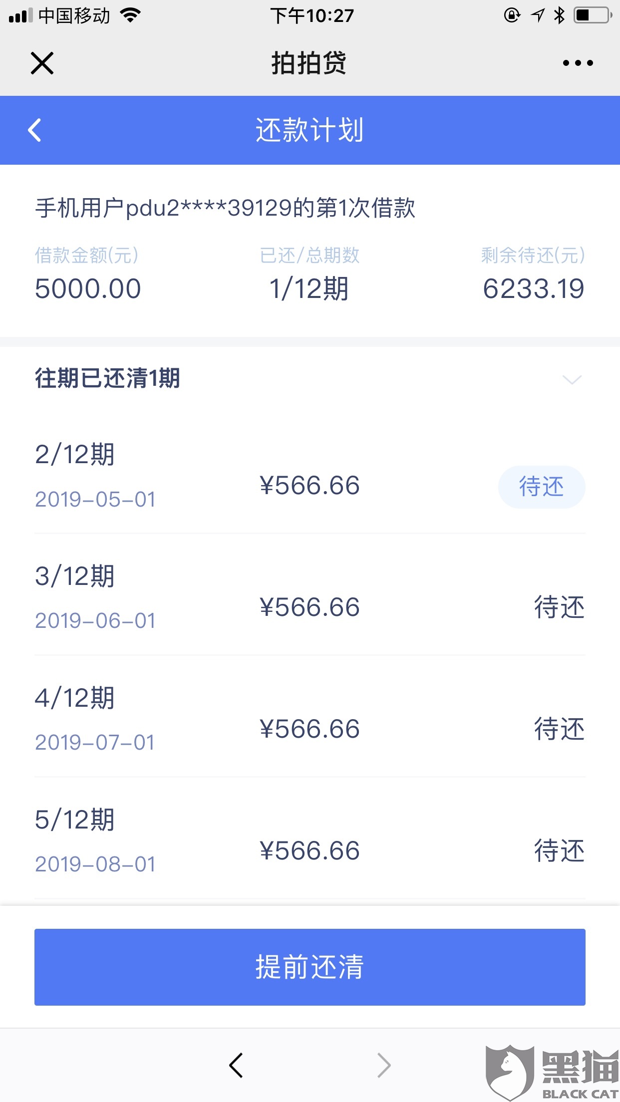 黑猫投诉:拍拍贷利息高,提前还清还要结算全部