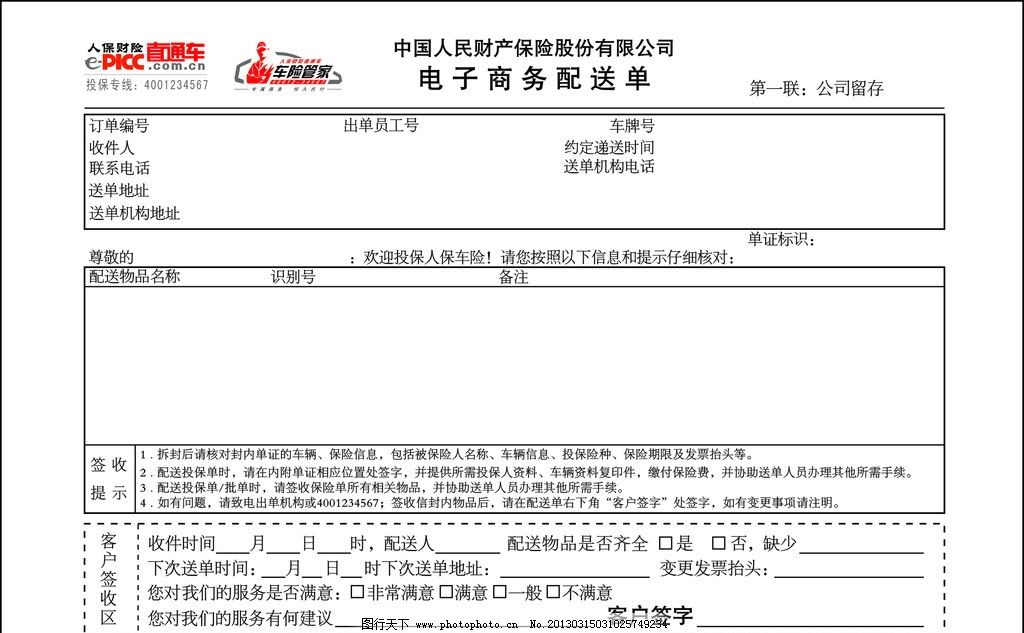 中国人保财险直通车图片,车险 车险管家 电子商务 配送单-图行天下图库