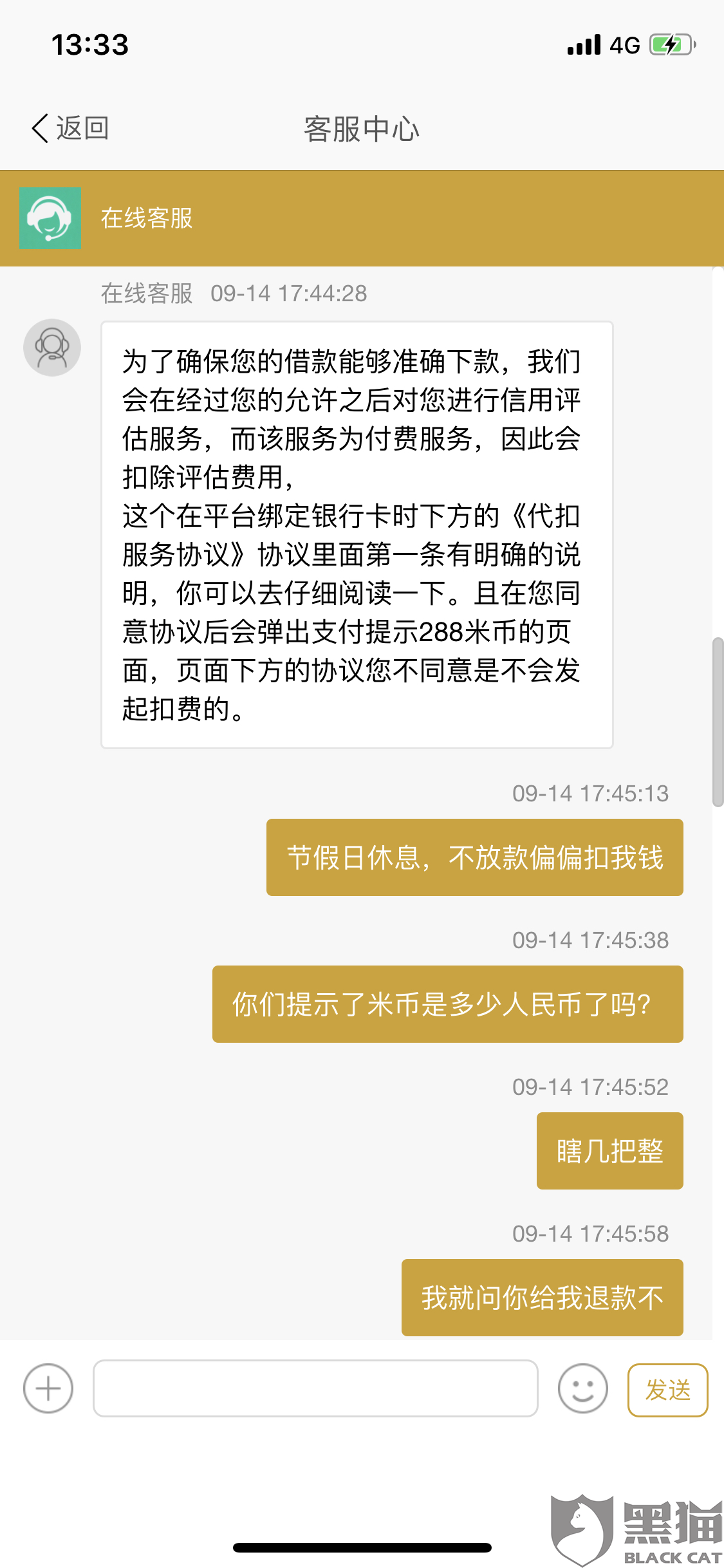 黑猫投诉:立即贷14天高炮,违法收取砍头息和买
