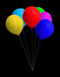 蓝红绿黄色粉色蓝色橙色气球上黑色孤立