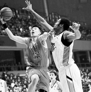 图文:[CBA]云南不敌江苏 陈照升在比赛中上篮