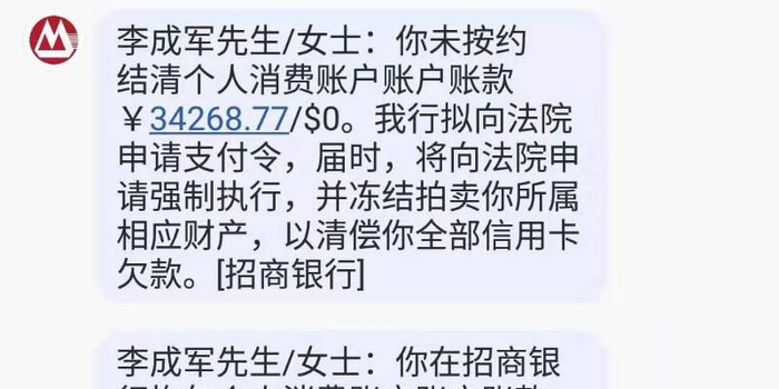 招商银行勾结黑社会?欠款人:招商银行雇黑社会