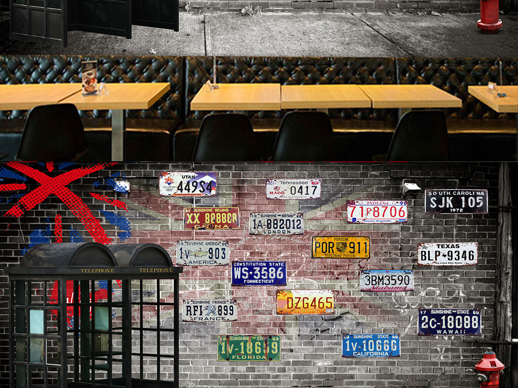 复古怀旧电话亭汽车车牌酒吧电视背景墙