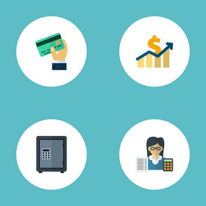 一套金融图标扁平型符号与钱包, 保险柜, 存钱罐