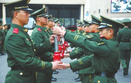 消防老兵退伍 水枪传承给新兵
