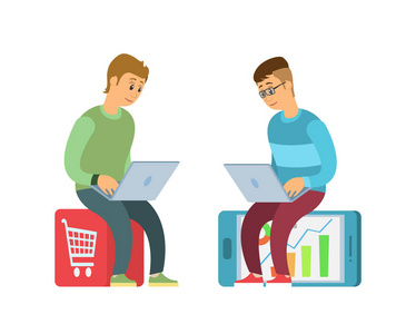 买,买方,购买,运货马车,卡通,性格,令人愉快的,商