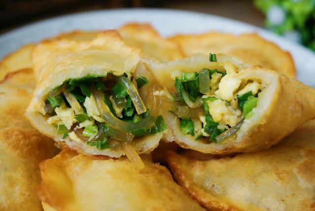 2碗面粉,1把韭菜,不发面不饧面,开水一烫,皮脆