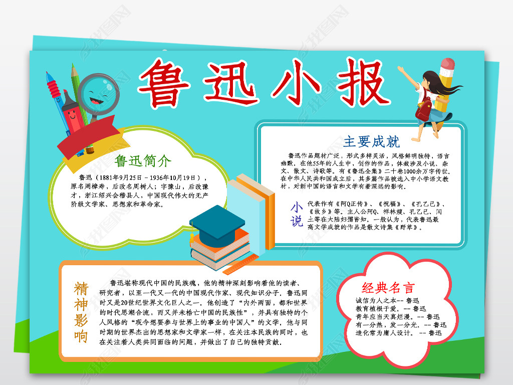 鲁迅中国历史文学读书名人故事手抄小报素材