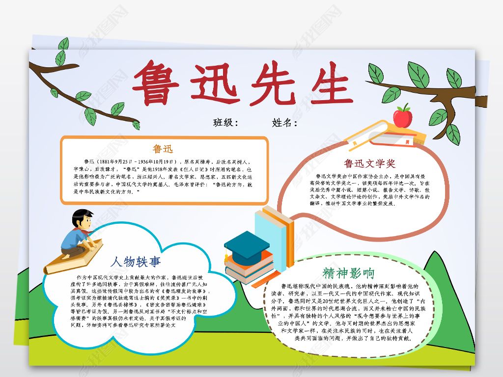 鲁迅小报中国历史文学读书名人故事手抄小报素