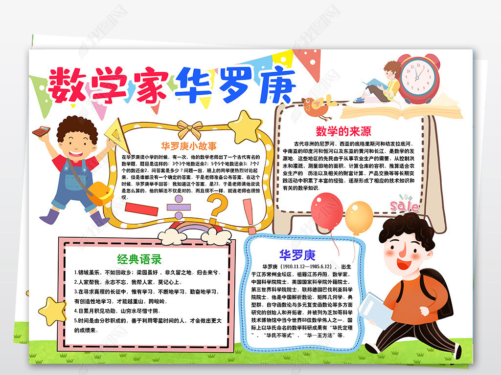 数学家华罗庚小报名人故事读书手抄竖版小报素