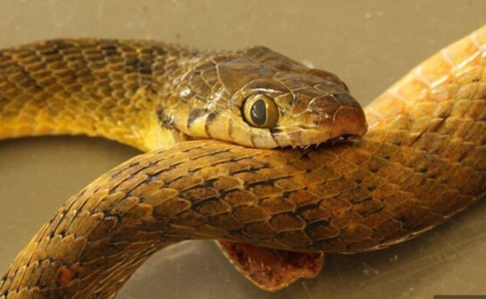 咬蛇自尽:棕树蛇毒牙插进自己体内致死