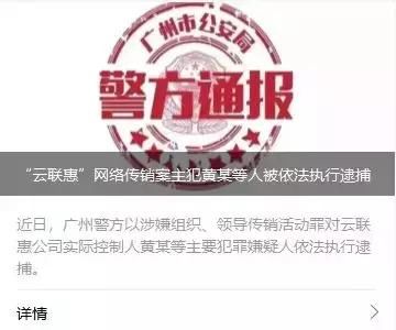 广州公安再发文:云联惠传销案主犯黄某等人被