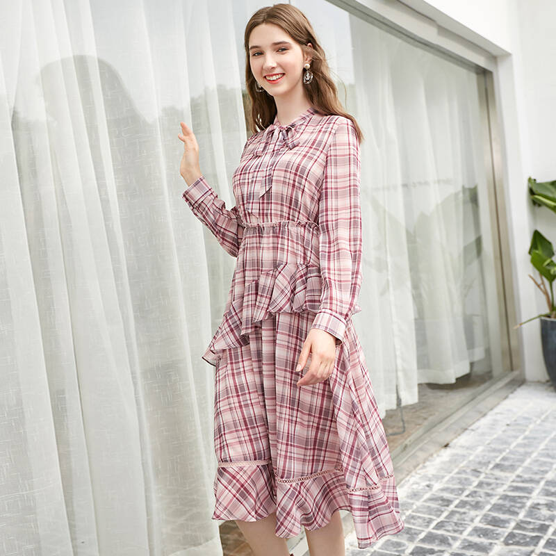 春游服装如何搭配?可以试试这格子连衣裙,背影