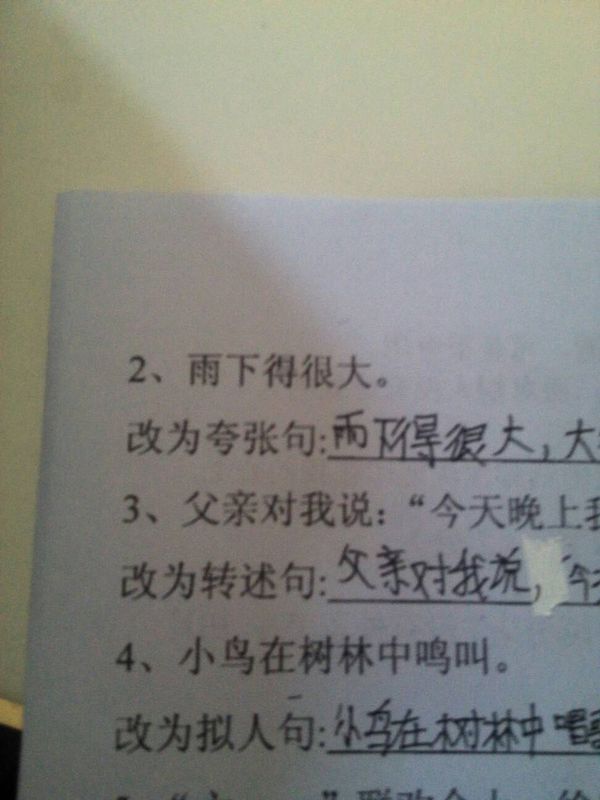 他跑得很快改成夸张句|雨下得很大改成夸张句