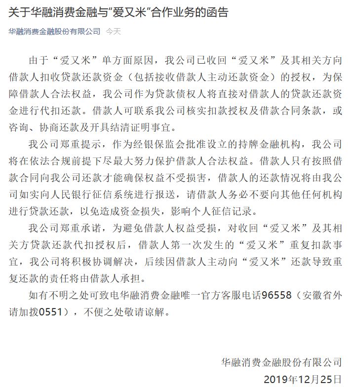 华融消费金融和爱又米因扣收还款互掐,借款人