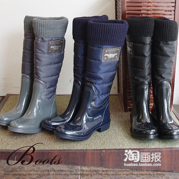 绒面薄棉小坡跟橡胶底高筒靴子 外贸原单欧美