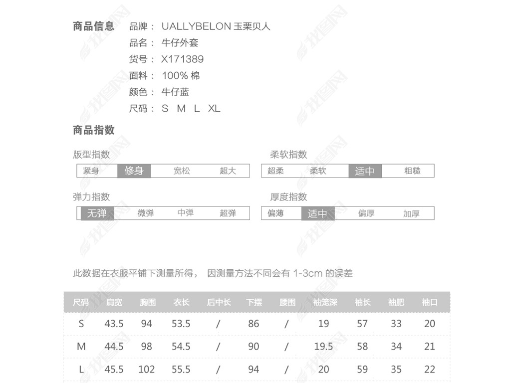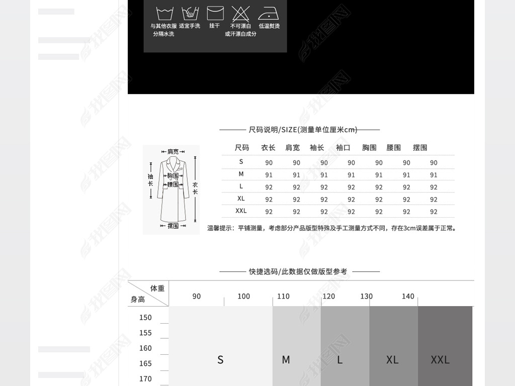 淘宝天猫详情页服装尺寸表衣服尺码表