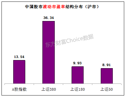 A股主要板块滚动市盈率。以这一指标衡量整体
