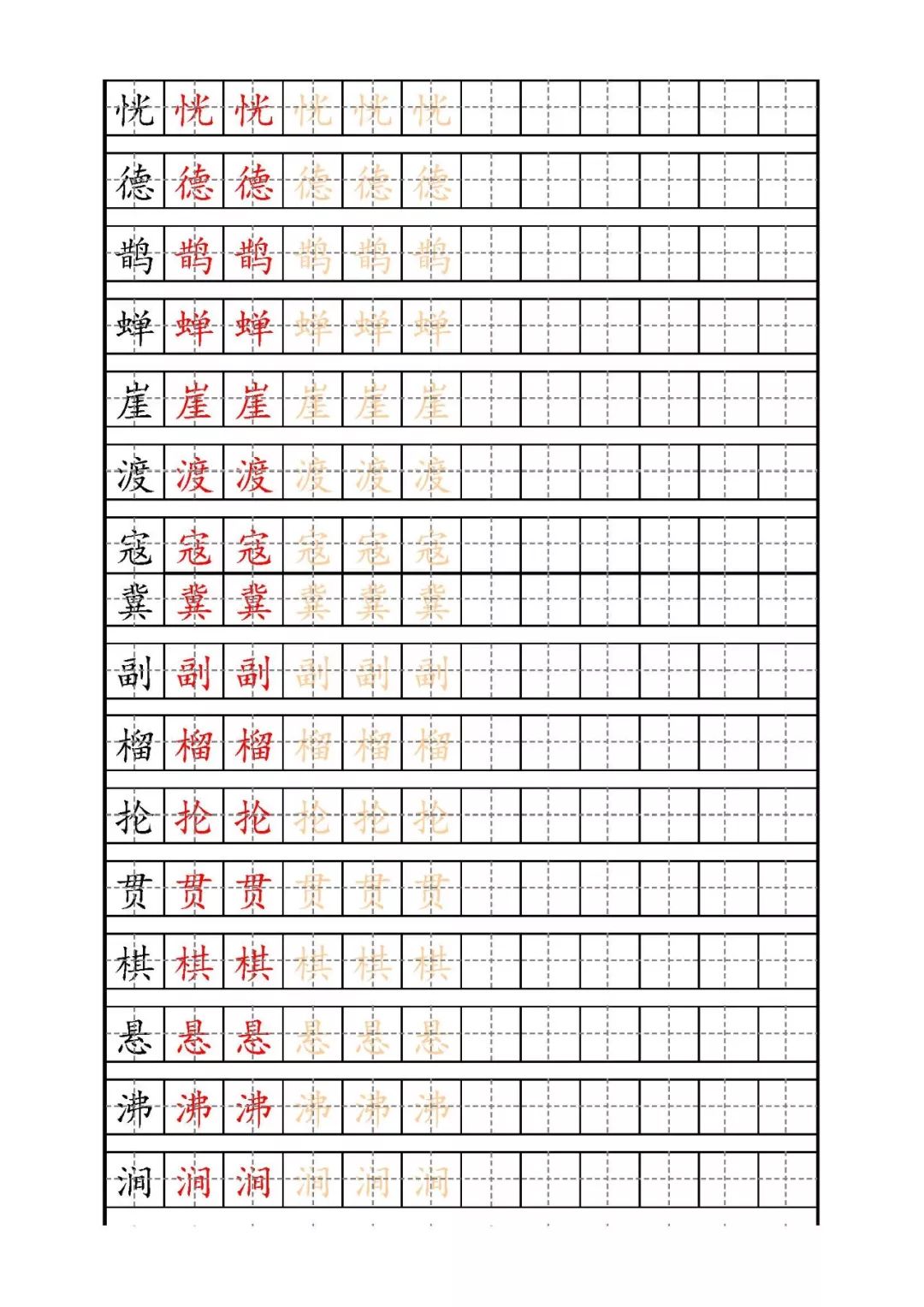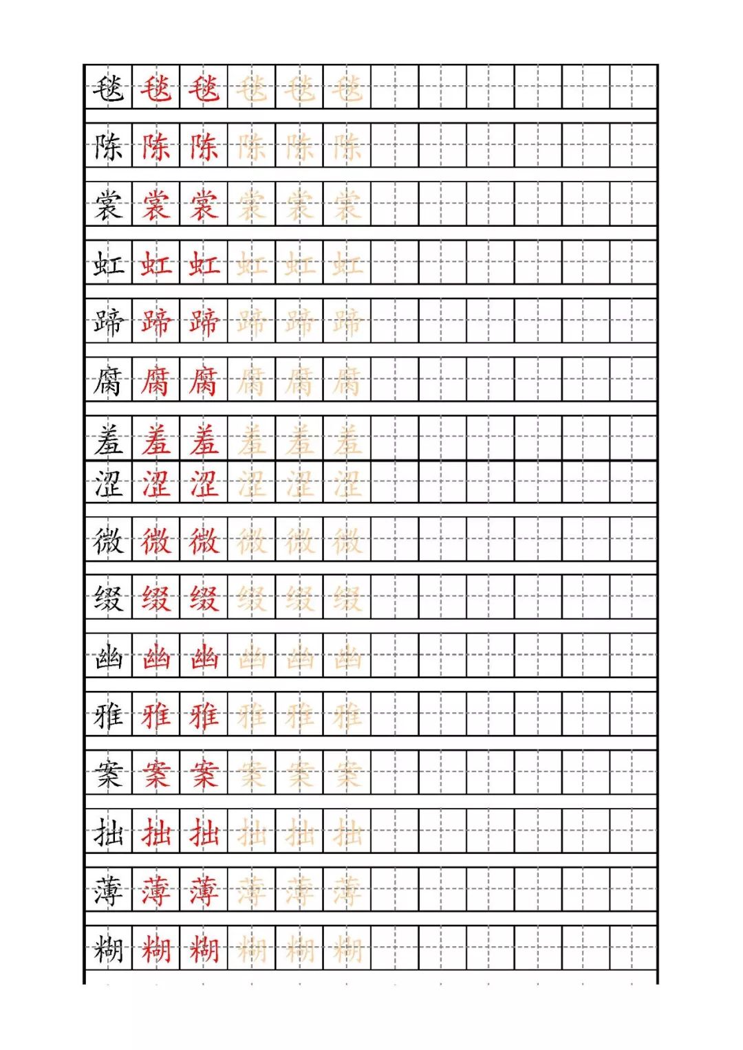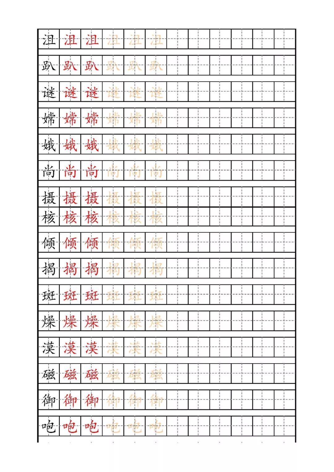 五六年级语文上册生字笔顺描红字帖 (可打印)丨