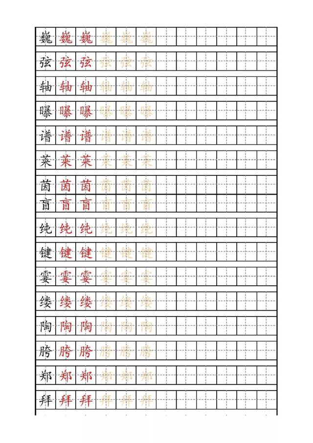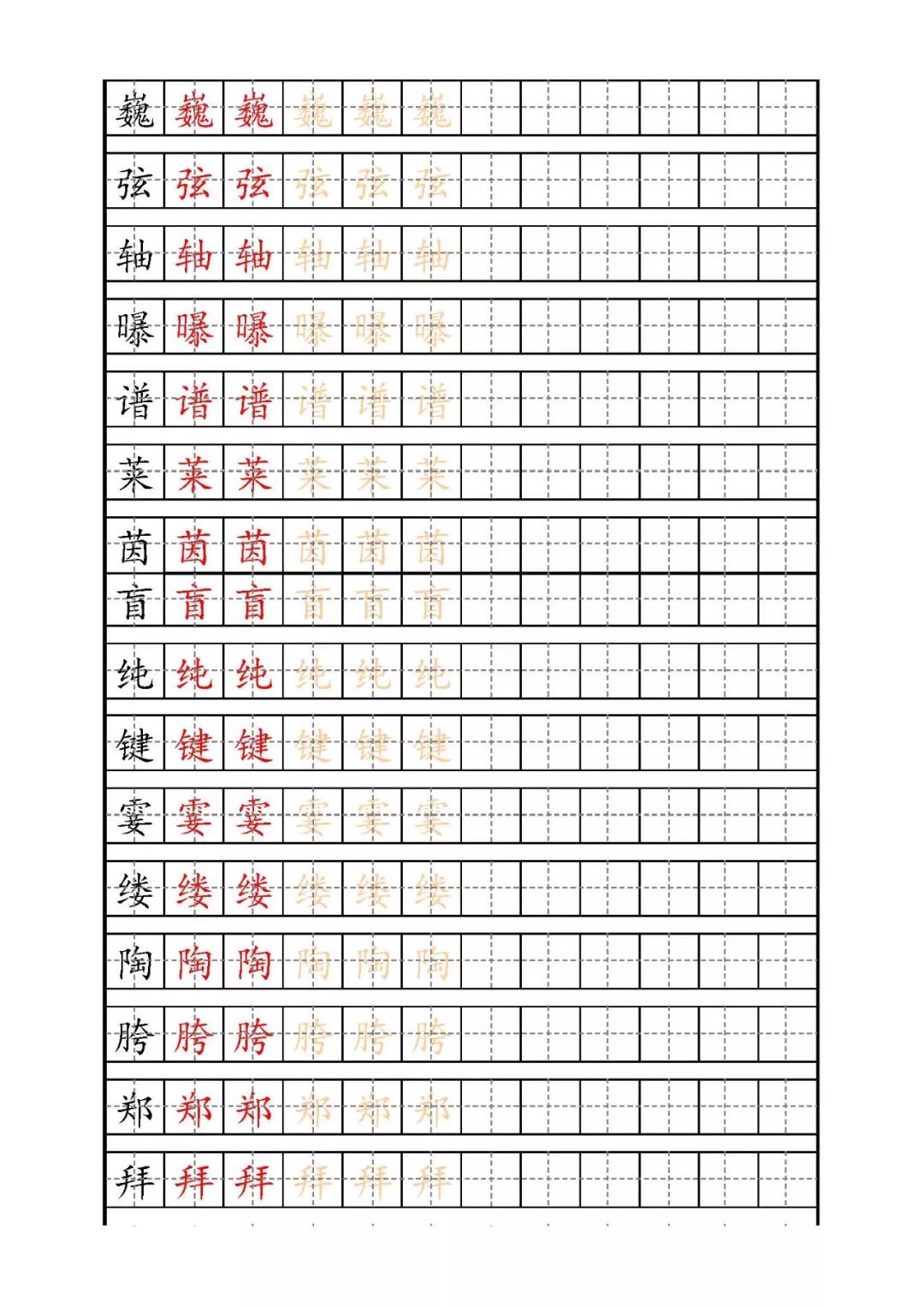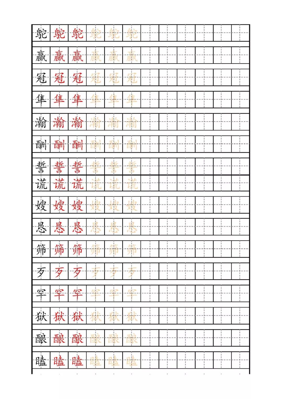 五六年级语文上册生字笔顺描红字帖 (可打印)丨