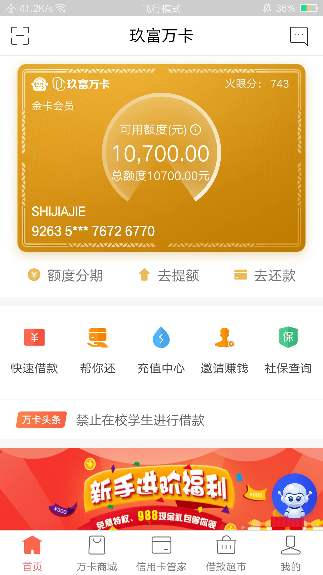 玖富万卡,重新认证后金卡,1万额度,还是没资格