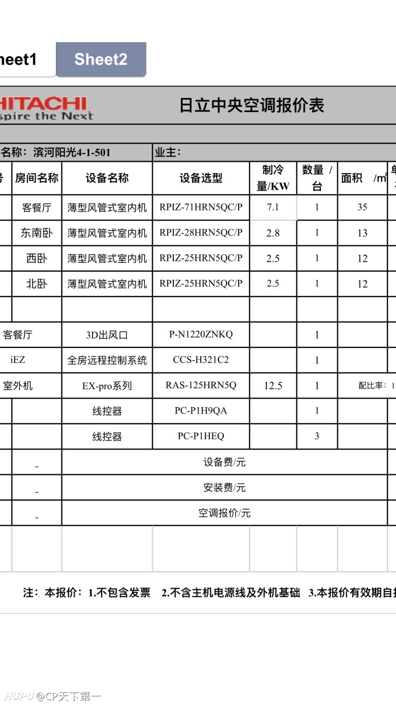 大家帮忙看看这个日立中央空调的报价方案合理