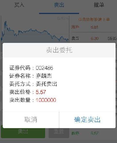 我已经隔夜委托跌停价5.57元卖出100万股_嘉