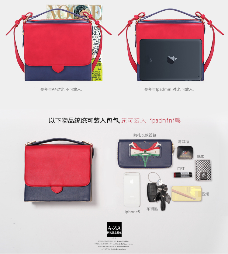 双胞胎款海军复古撞色女士手提斜挎多用女包5