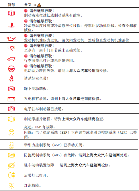 大众帕萨特故障灯大全,帕萨特故障灯标识大全