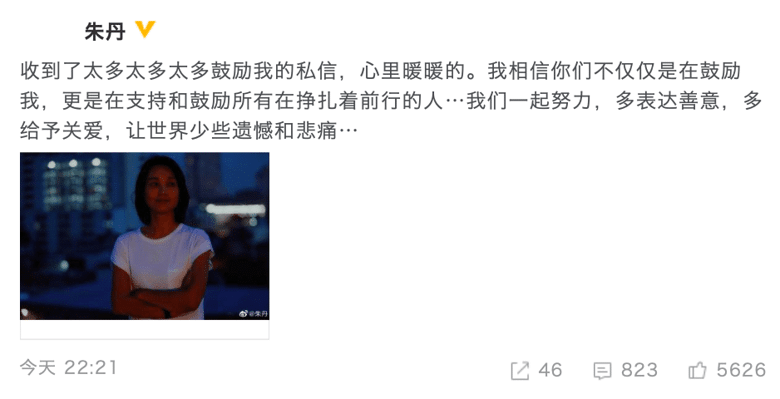 朱丹晒恶评后再发声 致谢给予关心者呼吁表达