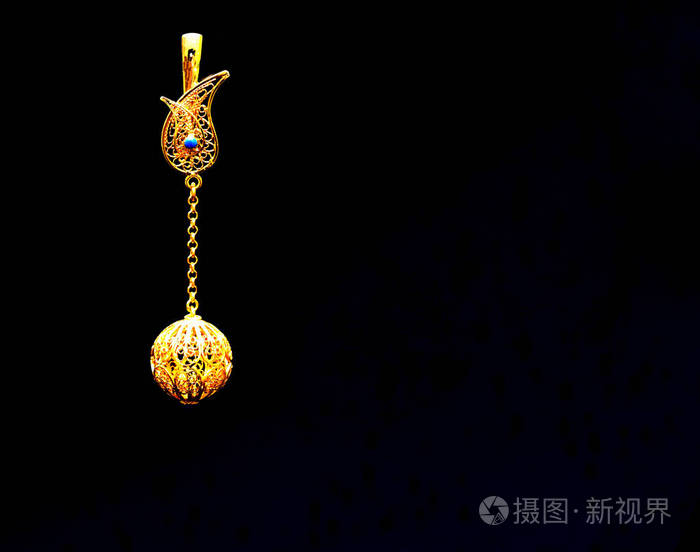 美丽的东方黄金土耳其首饰女性耳环黑色背景