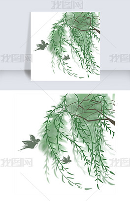 清明节柳树枝条插画素材图片免费下载_高清psd_千库网(图片编号11960847)