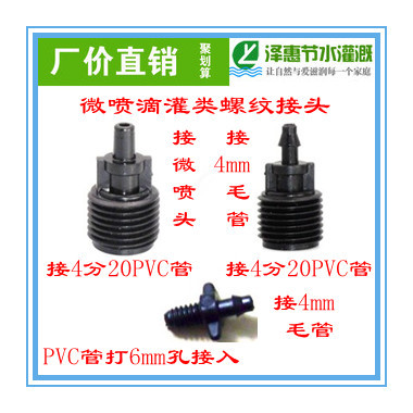 泽惠4mm黑毛管滴头喷雾头4分20PVC管螺纹转