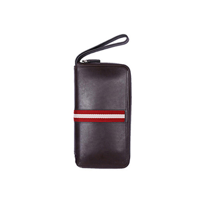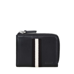 BALLY 巴利 男士黑色真皮配黑白条全拉链大钱