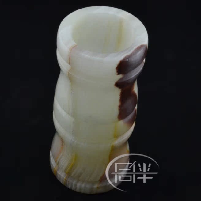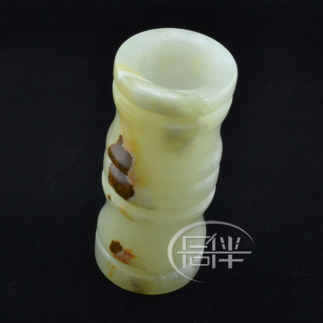 【【同伴】阿富汗玉带天然玉纹玉皮竹节笔筒