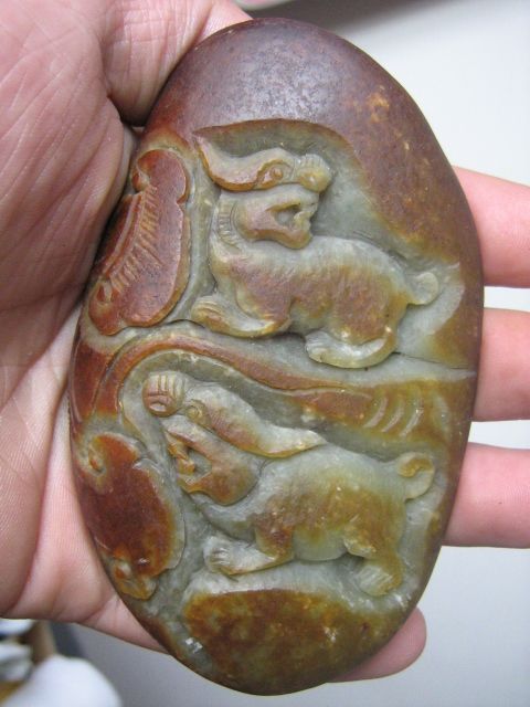 0元拍和田玉皮料籽独角兽把件252克|0元拍和田