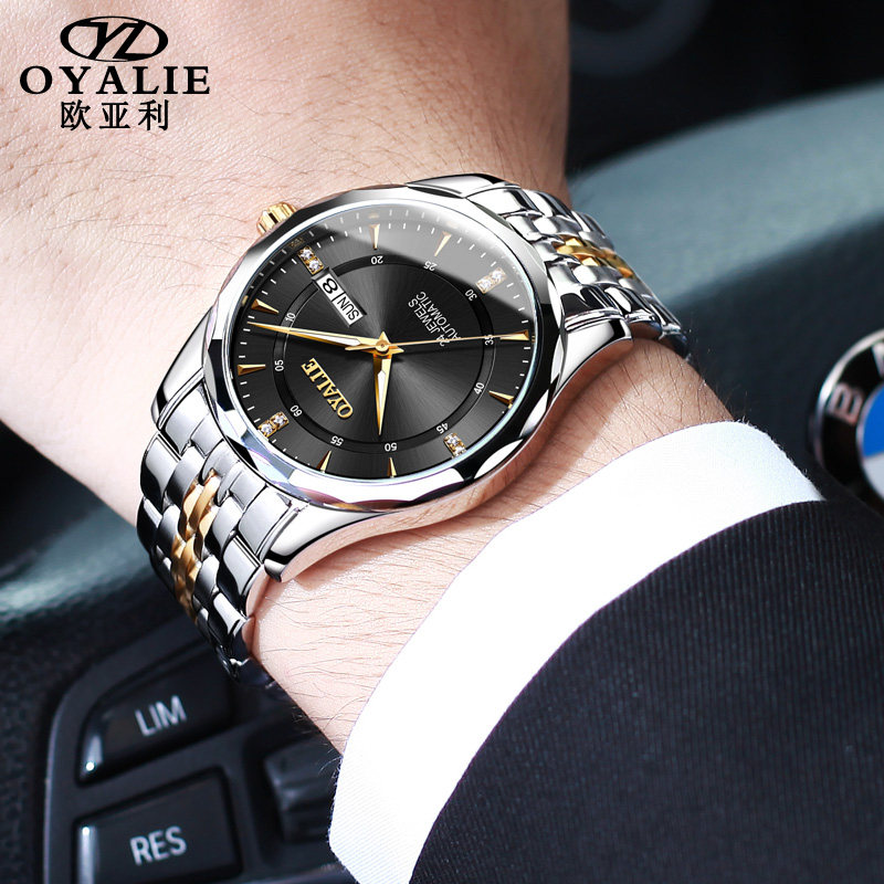 欧亚利正品 间金全自动机械表 时尚防水手表男