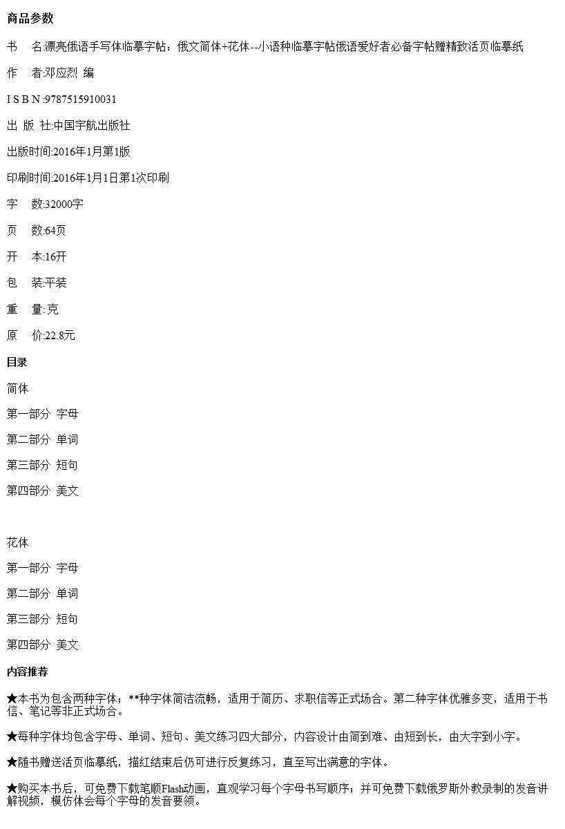 正版包邮 俄语字帖 漂亮俄语手写体临摹字帖:俄