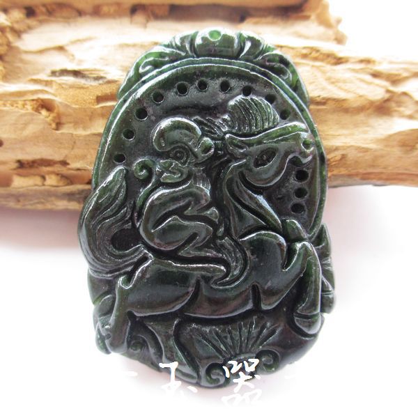 批发供应天然墨绿玉马上封侯吊坠 玉器批发 1