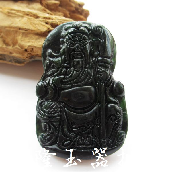 批发采购玉器工艺品-批发供应天然墨绿玉关公