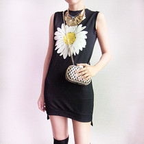 淘宝聚划算购物圆领无袖Carol 韩版复古拼接撞